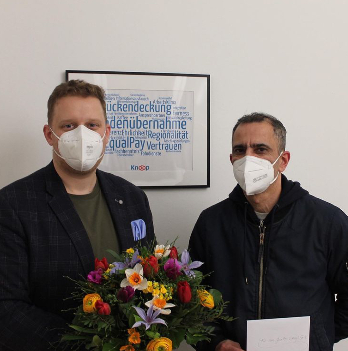 David Hanisch (links im Bild) und das gesamte Knoop-Team gratulieren Cüneyt Sevik zu seinem Jubiläum und wir bedanken und ganz herlich für die gute Zusammenarbeit in den letzten Jahren. Auf die nächsten 5!